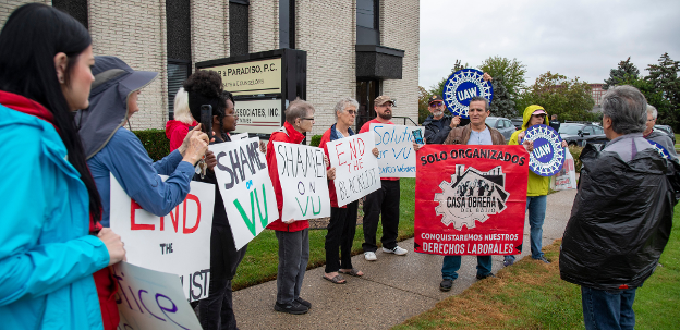 U.S. auto workers protested auto parts supplier VU Manufacturing in Detroit, Michigan last fall. After Mexican workers voted to join an independent union, VU shut down their plant and got them blacklisted from other jobs. The United Auto Workers is backing the growing independent union movement in Mexico, recognizing its importance for workers on both sides of the border. Photo: Jim West/jimwestphoto.com